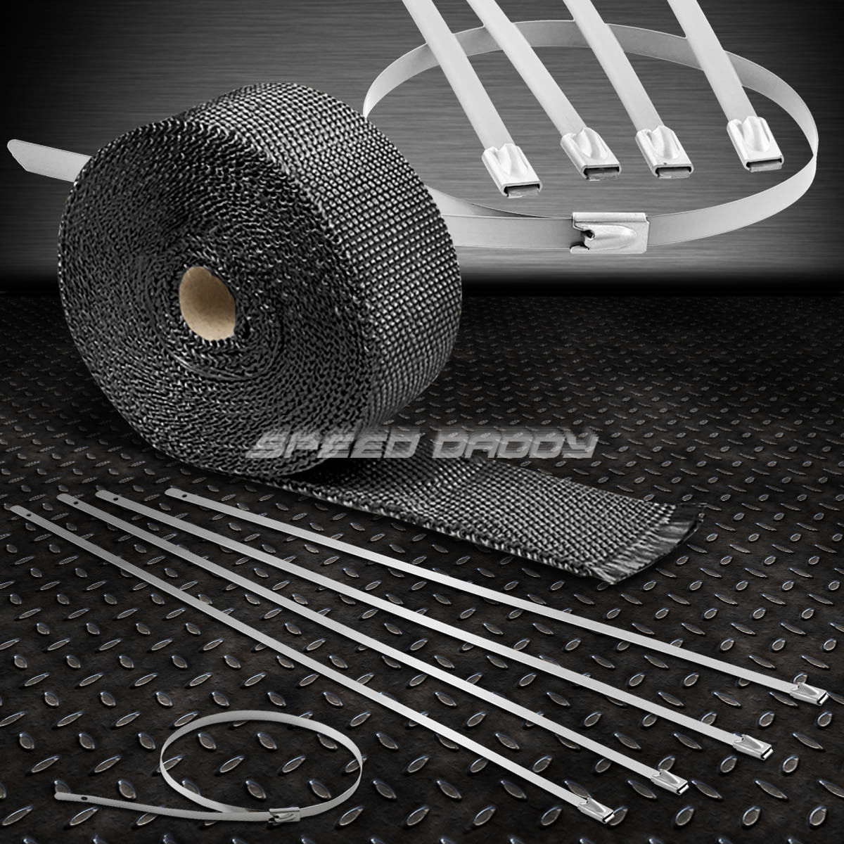 25'/7.5M 2" MANIFOLD HEADER CATBACK BLACK HEAT WRAP+STAINLESS SILVER ZIP TIE