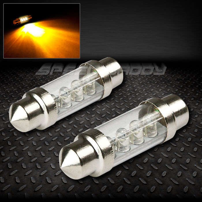 PAIR 39MM AMBER HIGH POWER INTERIOR DOME 12V LIGHT BULB LAMP w/4 X 3MM ROUND LED