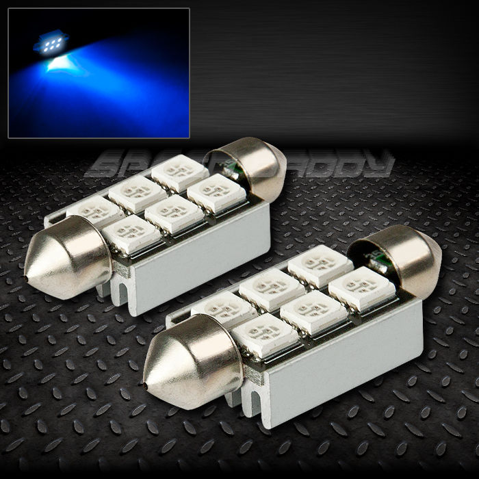 PAIR 6 SMD 6SMD 39MM BLUE 5050 5055 LED INTERIOR DOME/MAP 12V LIGHT BULB LAMP