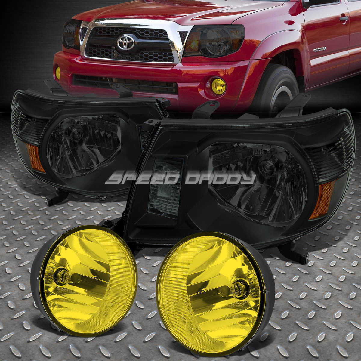 SMOKED CLEAR HOUSING HEADLIGHTS+AMBER FOG/DRIVING LIGHTS+SWITCH FOR 05-11 TACOMA