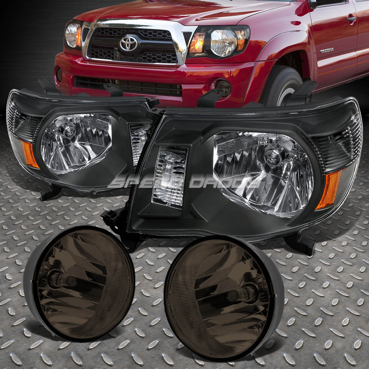 BLACK CLEAR HOUSING HEADLIGHTS+SMOKED FOG/DRIVING LIGHTS+SWITCH FOR 05-11 TACOMA